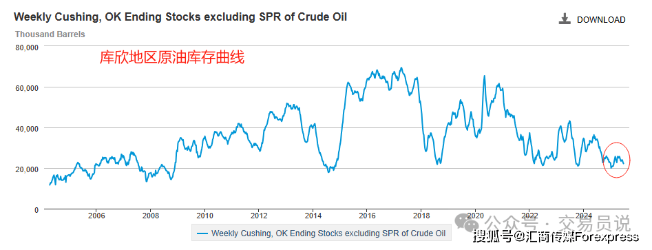 上图是美国库欣地区原油库存曲线。2020年5月份以来,库存曲线一直处于下降状态,期间虽有反弹,但都没有破坏空头结构。2022年7月份至今,库欣地区原油库存出现强支撑区,约在2000万桶附近。每次库存曲线跌至2000万桶左右时,便会激发一轮库存反弹。比照美原油的走势来看,2020年5月至2022年7月,随着库存曲线的下降,美原油价格持续上涨,市价从6.5美元冲高至130.5美元。2022年7月之后,原油库存曲线的降幅收窄,且下方存在库存支撑区,所以美原油价格由涨转跌,今年最低触及55.3美元。我们认为,库存曲线一直窄幅波动,无法对美原油价格形成显著影响,只有大角度的库存曲线上升或者下降,才能够刺激美原油价格涨跌。