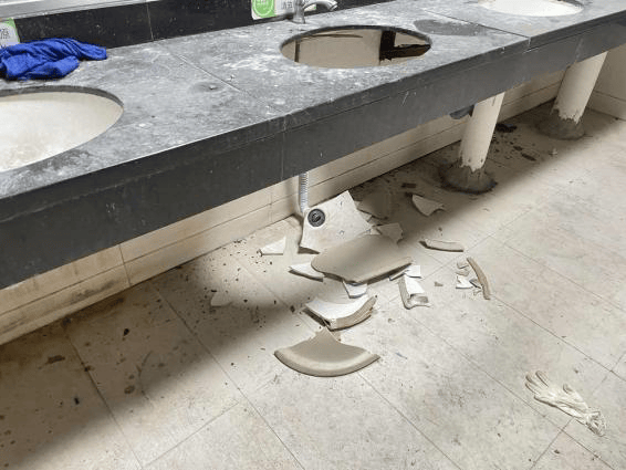 醋酸正丙酯包装桶飞出击破洗手台。